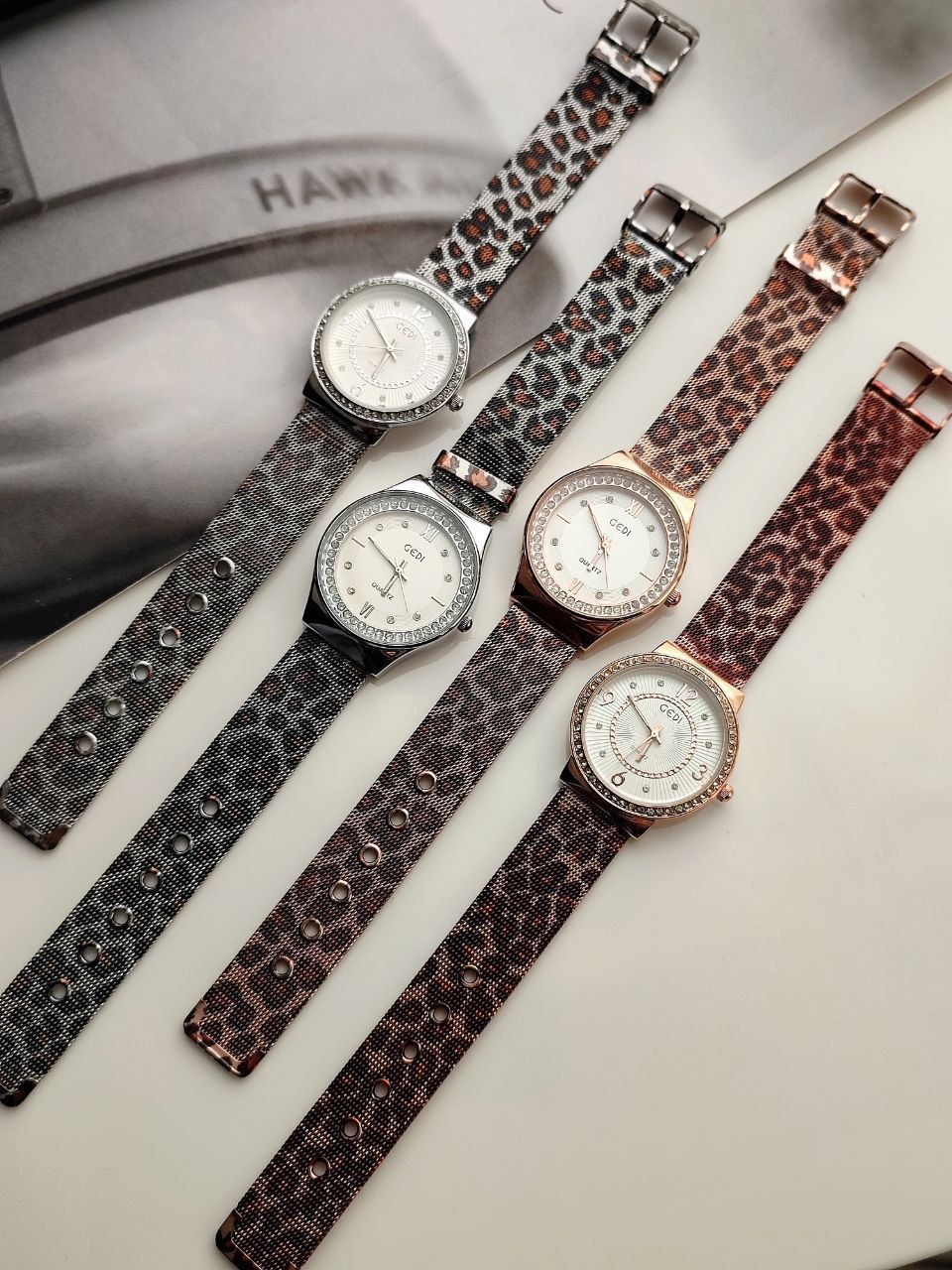 این ساعت زنانه دارای بند پلنگی و بند حصیری بینهایت زیبایی است که میتوان به صورت روزمرگی از آن استفاده کرد کیفیت کار عالیه و انتخابی مطمئن و خیلی خاص برای کادو دادن این