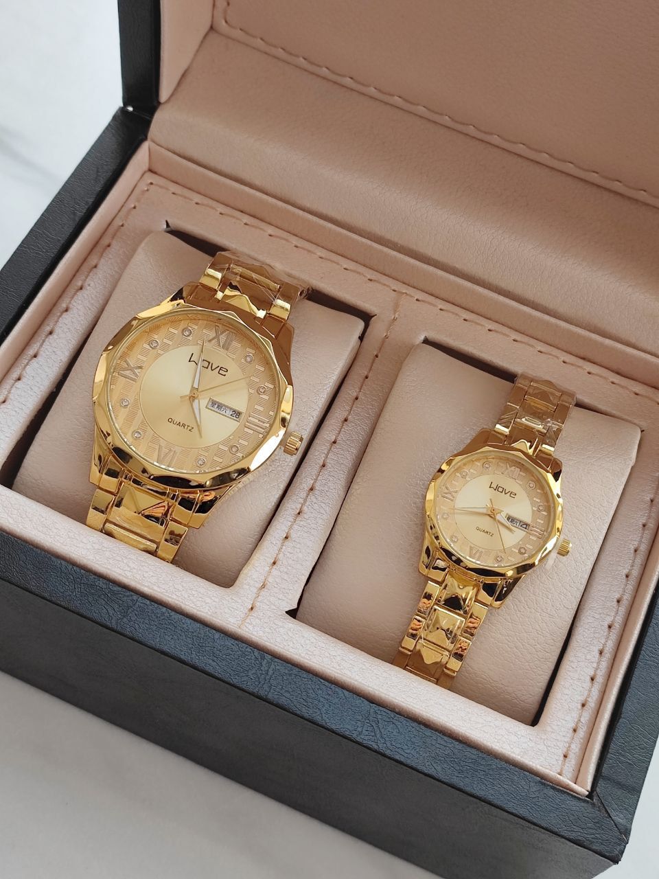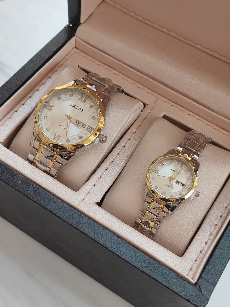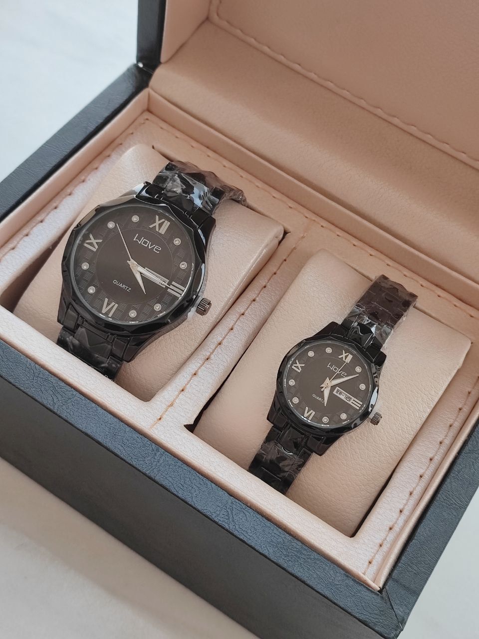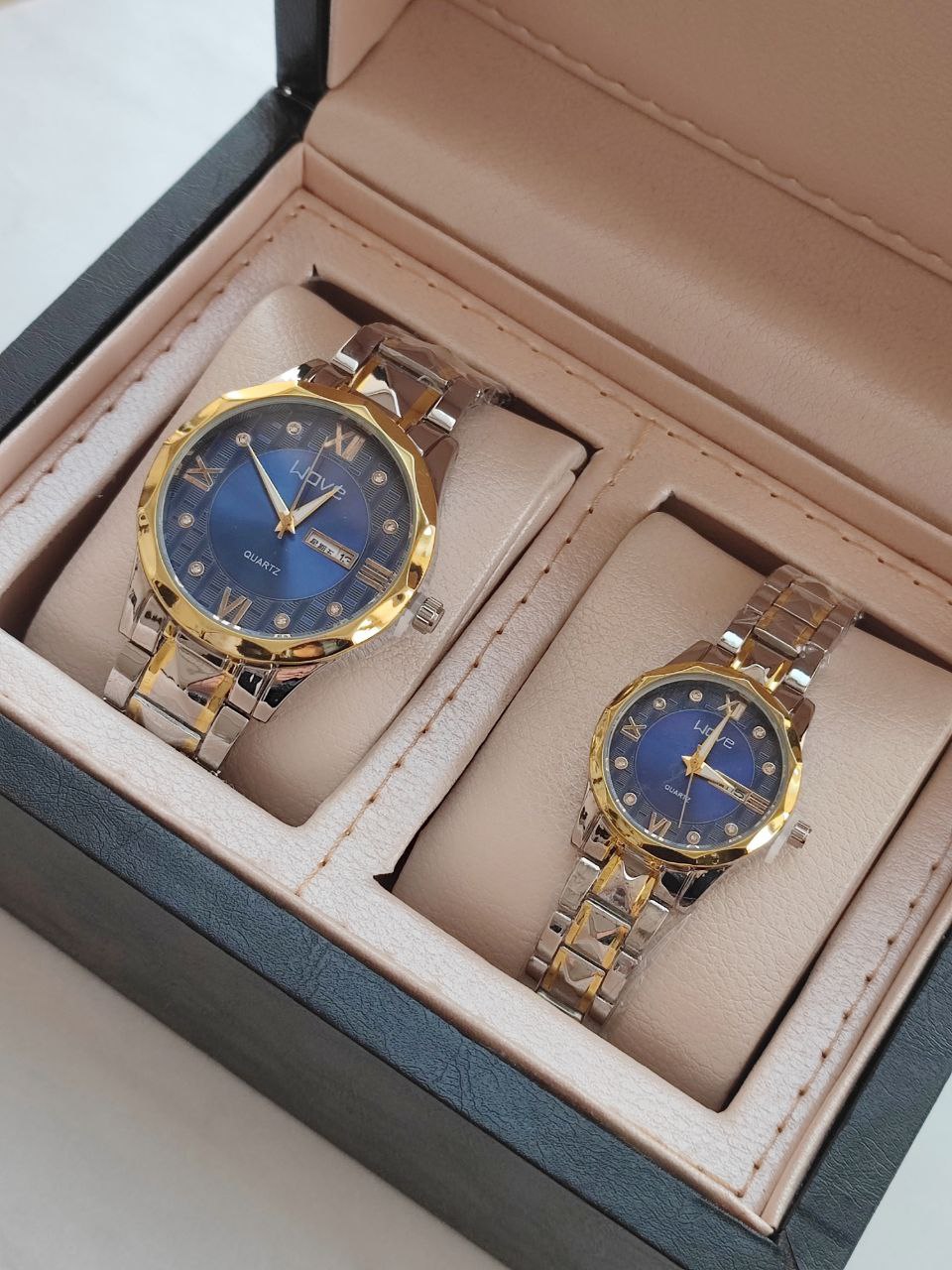 این ساعت دارای دو تقویم است کیفیت کار عالی موتور با کیفیت و قاب و بند استیل آن باعث جذابیت ساعت شده این مدل برای زوجین و عروس دامادها خیلی مناسب و شیک است