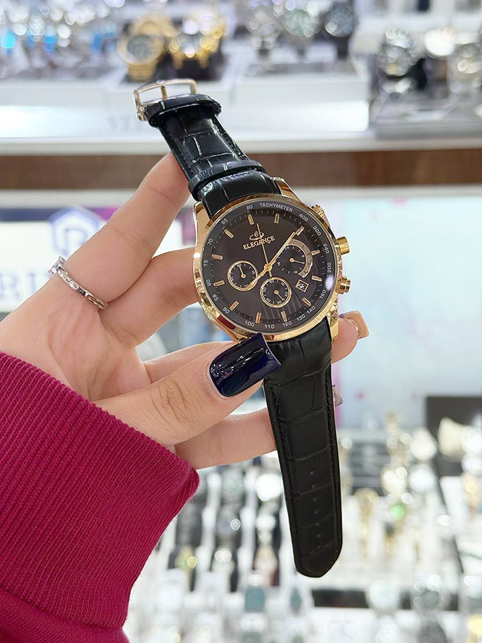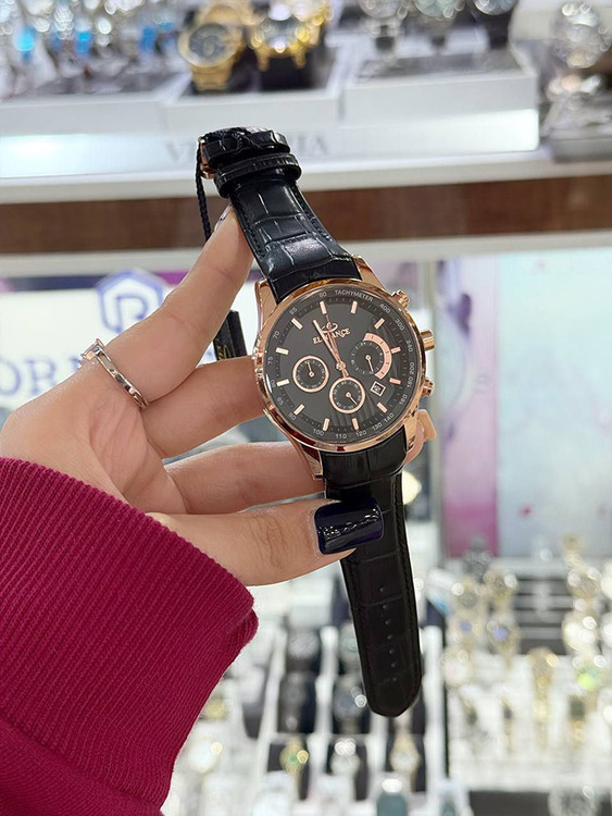این ساعت دارای بند چرم و دور قاب استیل رنگ ثابت است