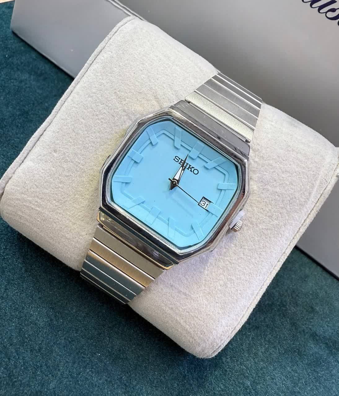 ساعتی اسپرت دارای روز شمار موتور کوارتز صفحه نمایش صدفی و زیبایی داره بند استیل رنگ ثابت دارد بند کرکرهای ضد آب
