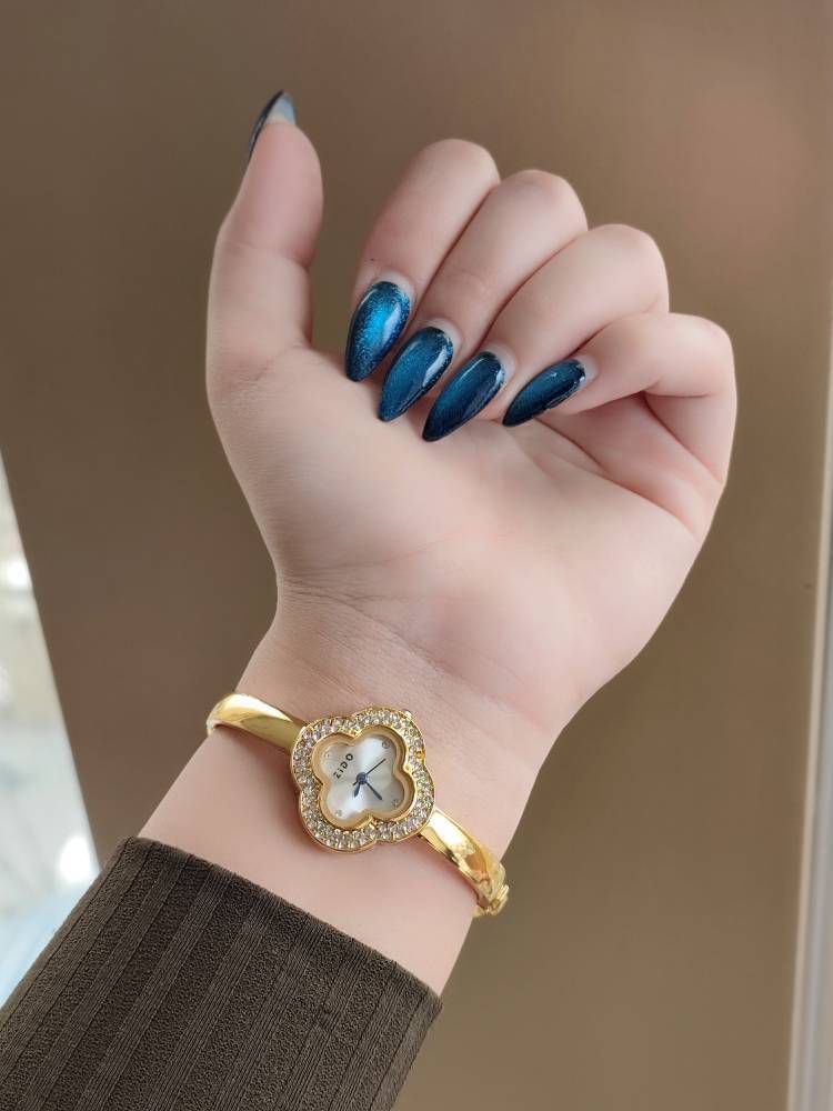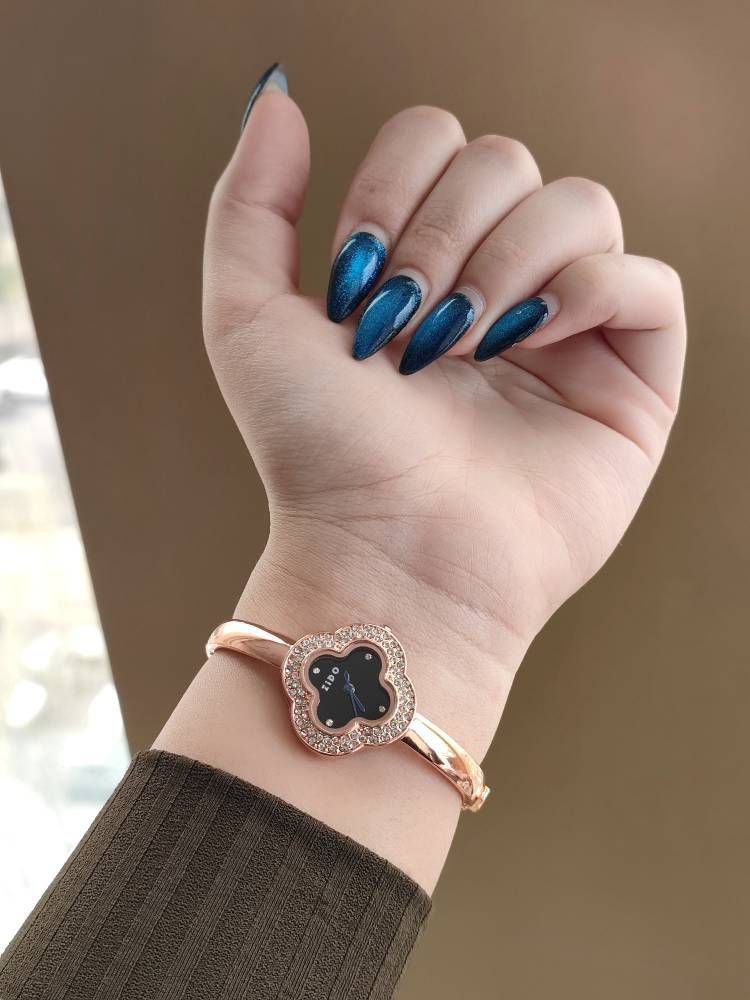 بند النگویی ظریف و دخترانه پسند است دور قاب نگین کاری شده موتور با کیفیتی دارد قاب و بند ساعت استیل است