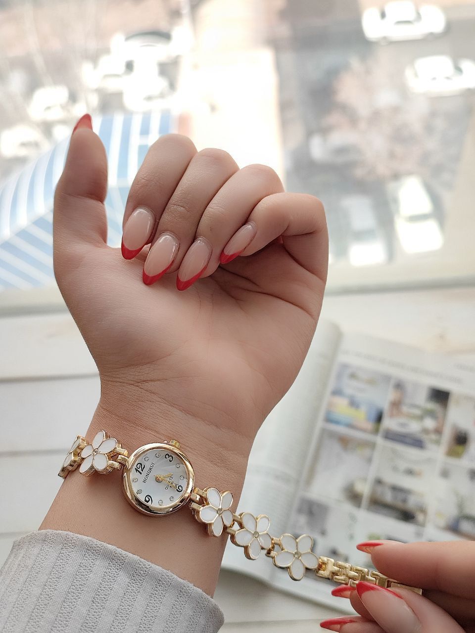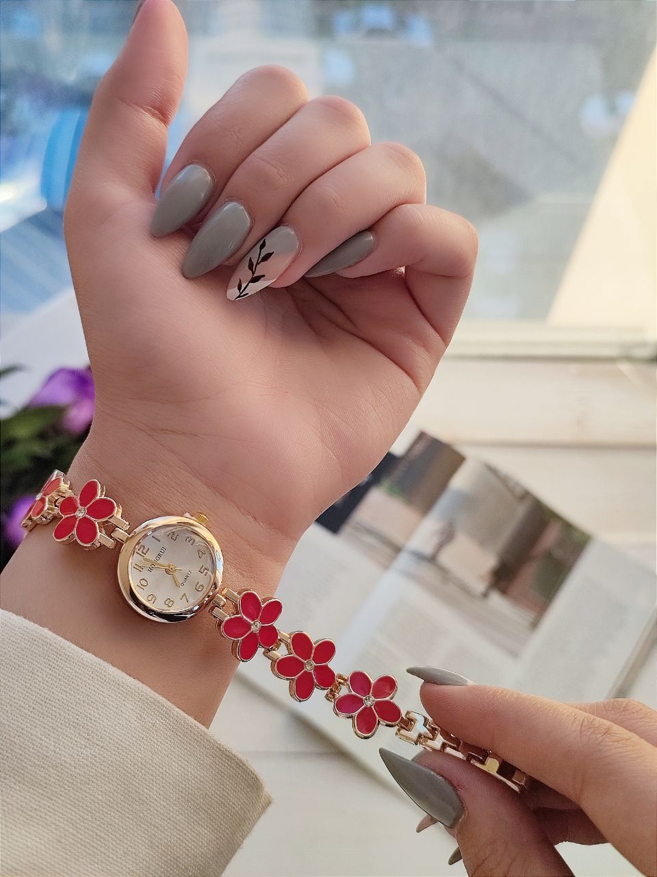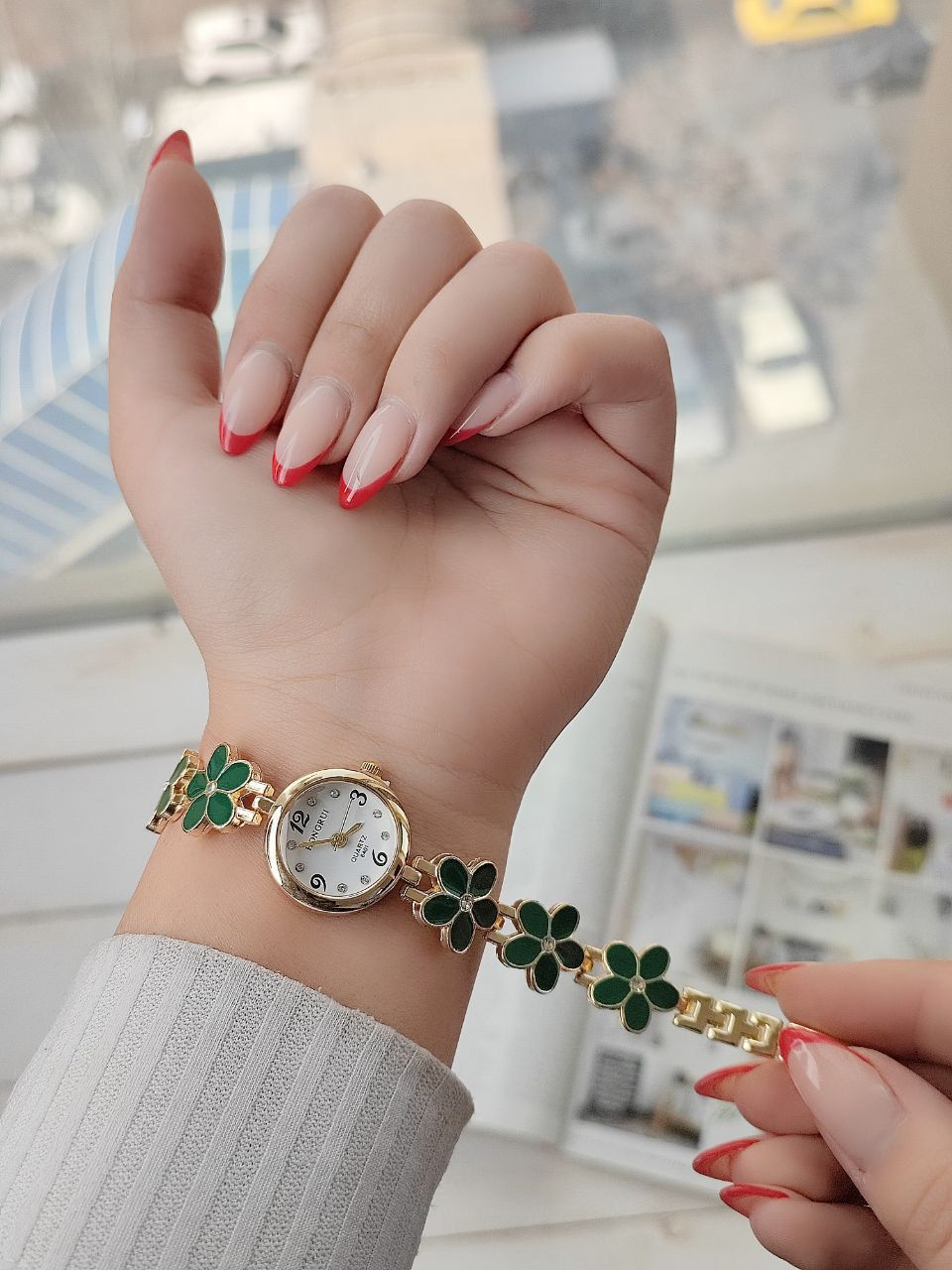 ساعت زنانه. مارک HONGRUI با بند گل خیلی خوشگله مخصوص دختر خانم های گل. کادو مناسب تولد دختر تولد عزیزانتون را با این ساعت به یاد ماندنی کنید