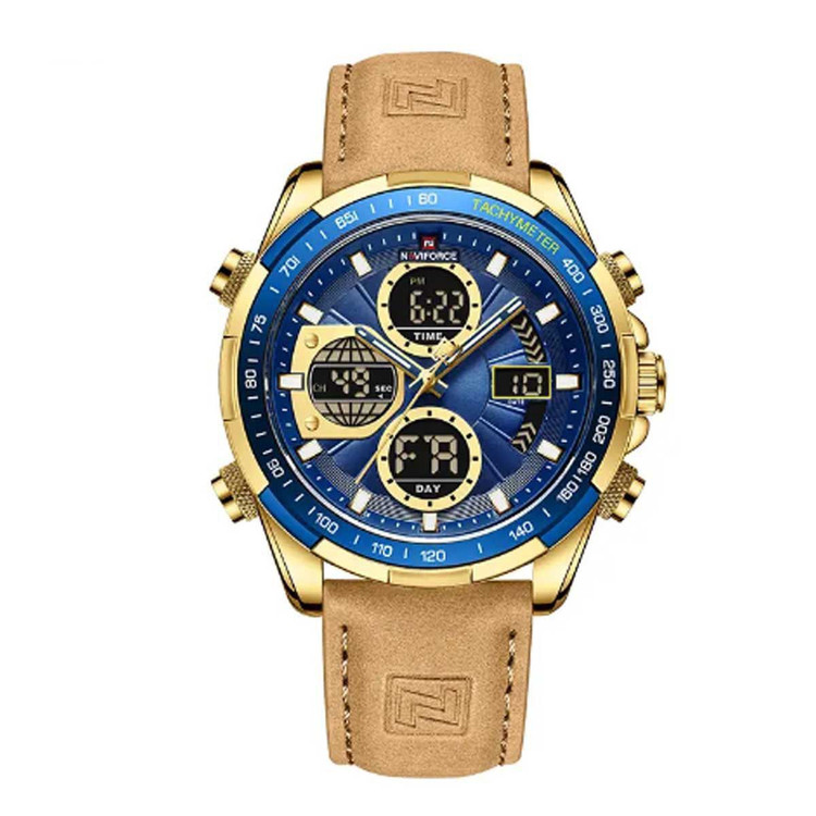 این ساعت دارای کرنومتر، روزشمار، آلارم و عقربه های شب تاب است. نمایش روز هفته و قطر صفحهاش مناسب است. بند چرم درجه یک و شیشه کریستالی مقاوم در برابر ضربه و خش دارد. قفل استیل ضدآب 3ATM و کارت گارانتی ۱ ساله همراه با جعبه ارائه میشود