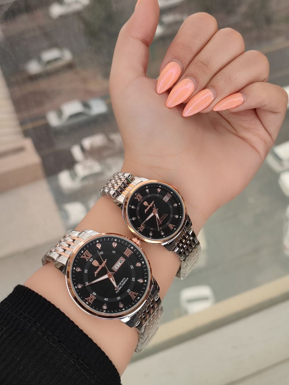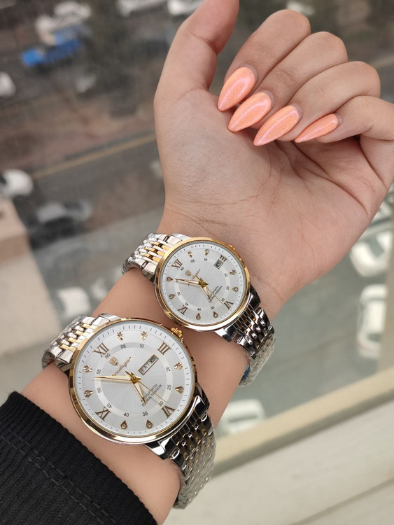 مخصوص زوجین خوش سلیقه این ساعت رنگ ثابت دارد تقویم دار هستند و دو قفل مخفی دارند