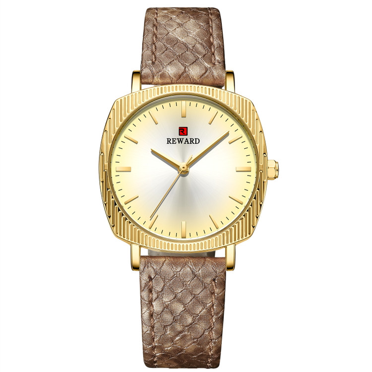 REWARD 23008 یک ساعت مچی زنانه زیبا و شیک از برند معتبر REWARD است که با طراحی جذاب و دلنشین خود، نظر هر بیننده ای را به خود جلب می کند. این ساعت با موتور سیکو ژاپن، کیفیت و دقت بالایی را به شما ارائه می دهد